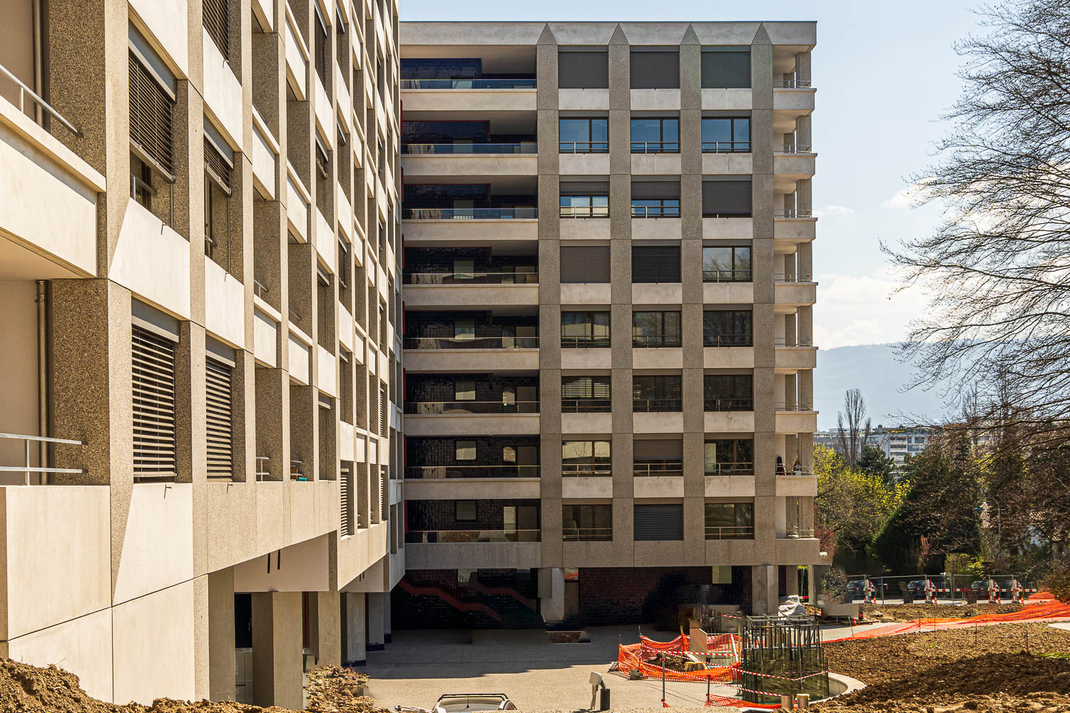 - Conception : Travaux de béton armé, maçonnerie, Cage d'escalier en béton apparent type 4. Escaliers, balcon avec parapets intégrés, placages grande hauteur jusque 10m. et façades préfabriquées sandwich.